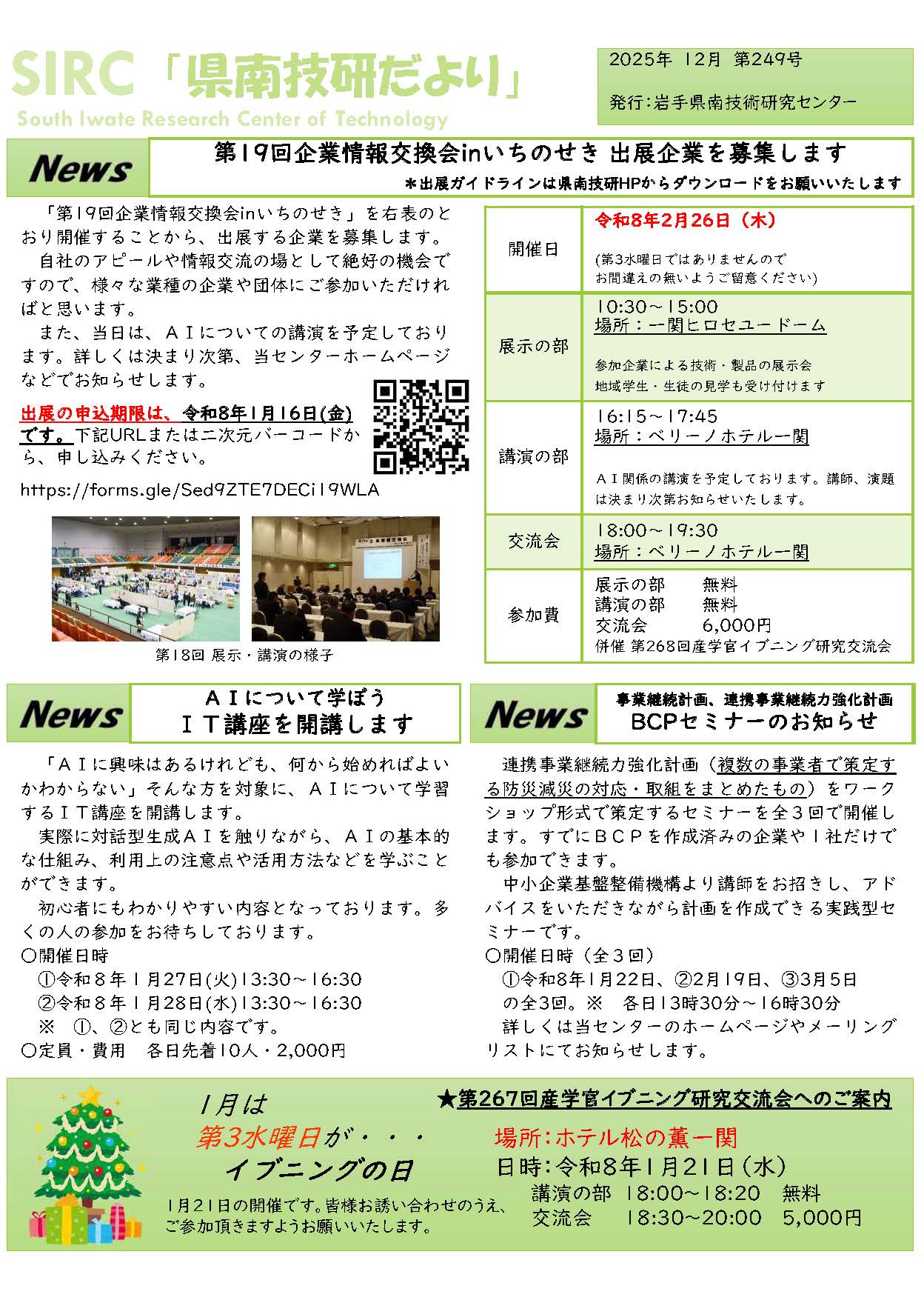 第19回企業情報交換会inいちのせき 出展企業の募集